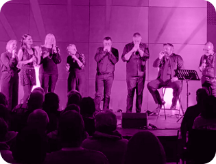 Seit über 20 Jahren touren die Vielharmoniker nun durch den Odenwald und haben sich dort mit ihrem fein abgestimmten Songrepertoire einen Namen gemacht. Sie sind 7 Sänger*innen, Beatboxer, Klangkünstler und augenzwinkernde Geschichtenerzähler. Garniert mit etwas Lyrik, Jazz und Volksliedgut sind internationale Chartsongs, Evergreens und Filmmelodien in überraschenden 7-stimmigen Arrangements verpackt und versprechen ein lebendiges und kurzweiliges Abendprogramm.